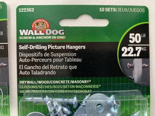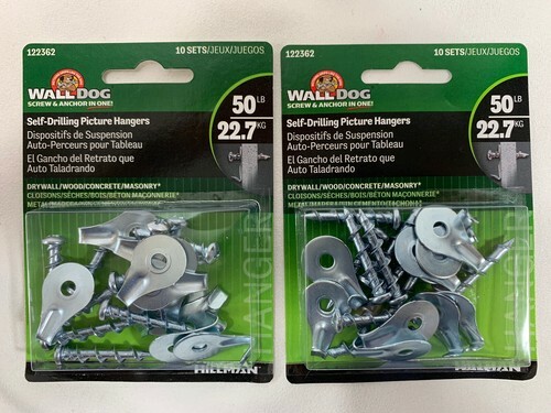 - 2 Hillman WALL DOG Self-Drilling Drywall PICTURE HANGER 50 lb. 10pk 122362 QTY20