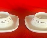 - 2 Ikea Square Egg Cups White w Stripes 365 Susan Pryke Base 4" Diameter