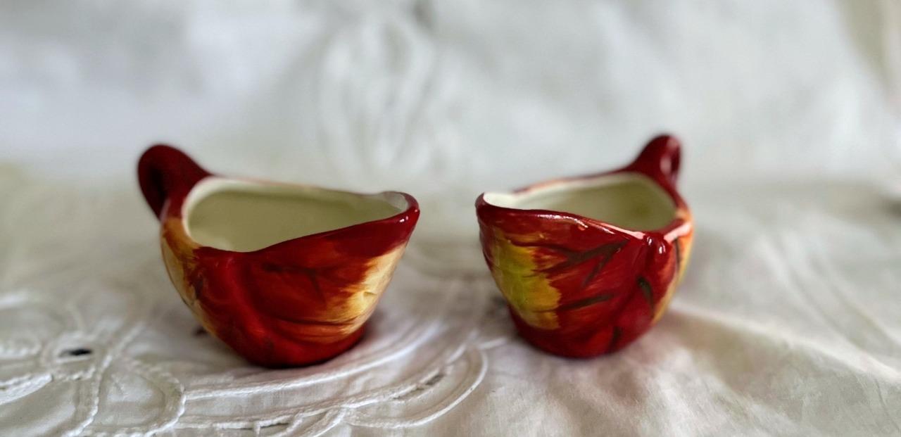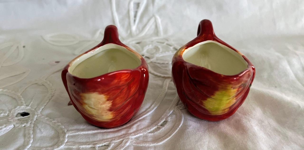 2 Individual Gravy or Creamers 4" Length 2" Tall Fall Colors Red Yellow Orange