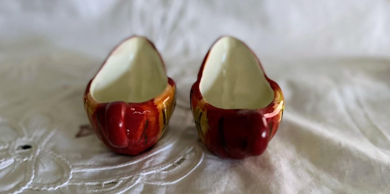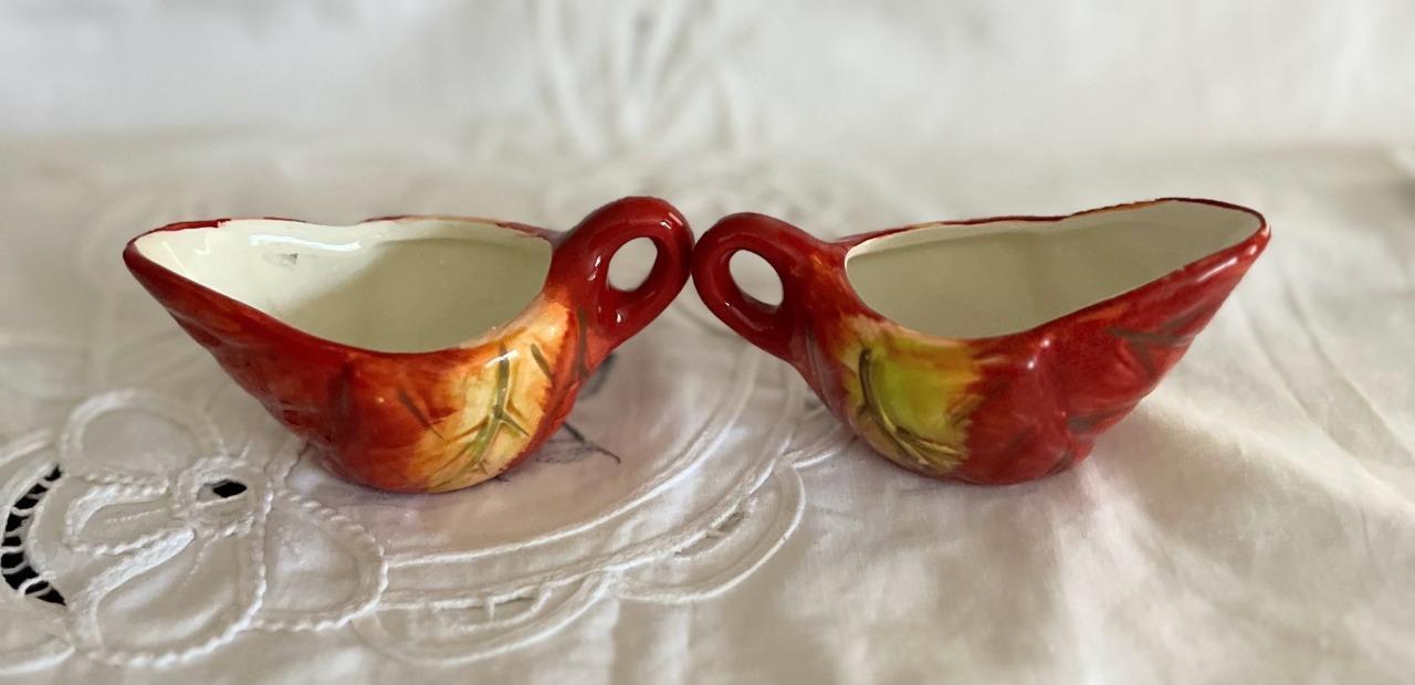 - 2 Individual Gravy or Creamers 4" Length 2" Tall Fall Colors Red Yellow Orange