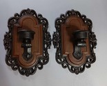 - 2 MCM Wall Sconce Candle Holders Vintage Faux Wood Decorative Gothic Style USA