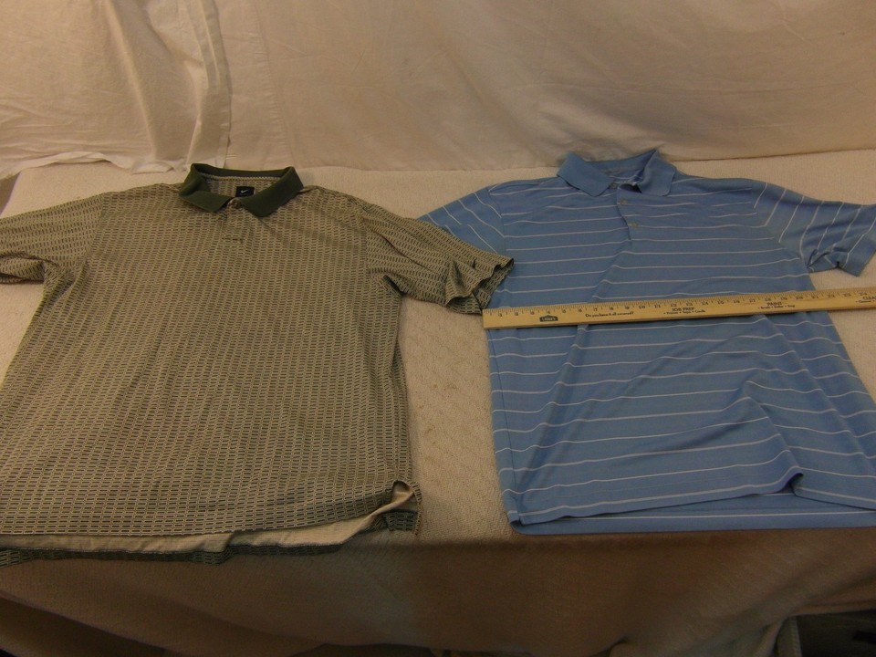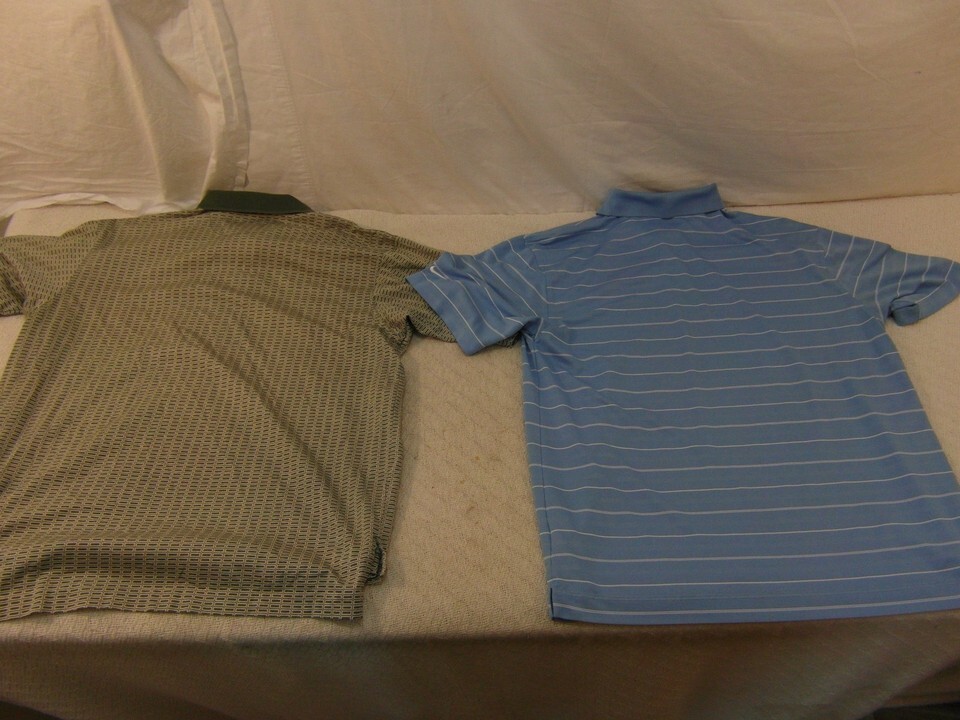- 2 Mens Nike Golf Blue White Striped Large / Green White Large Polo Shirts