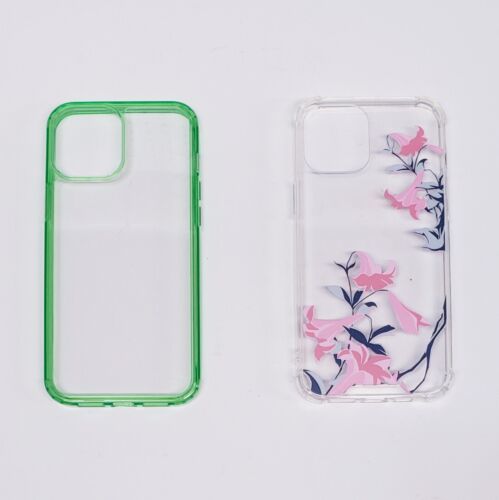 - 2 New iPhone 12 Pro Max Phone Cases - Clear Green & Lily - Shock Absorption CUTE