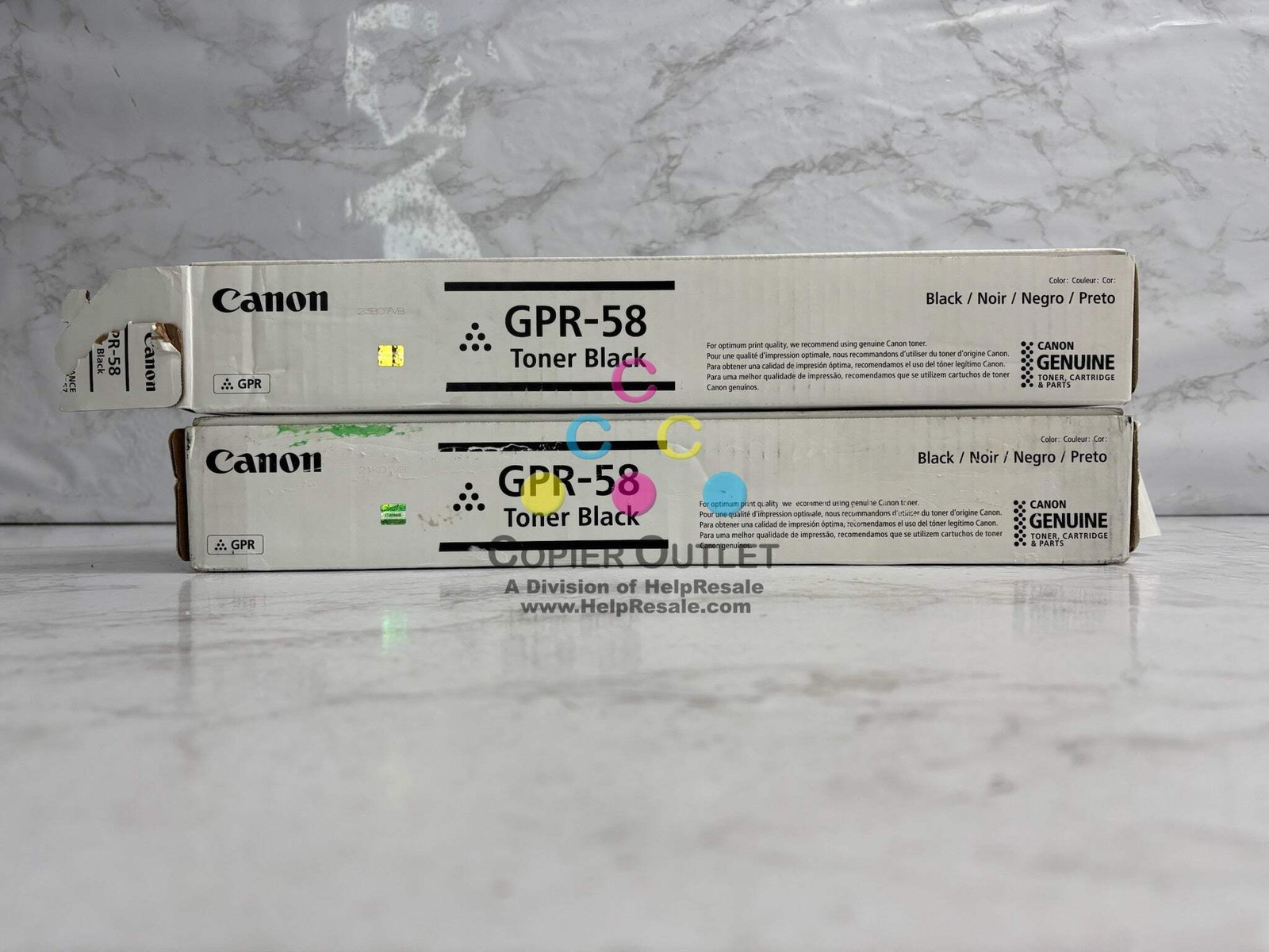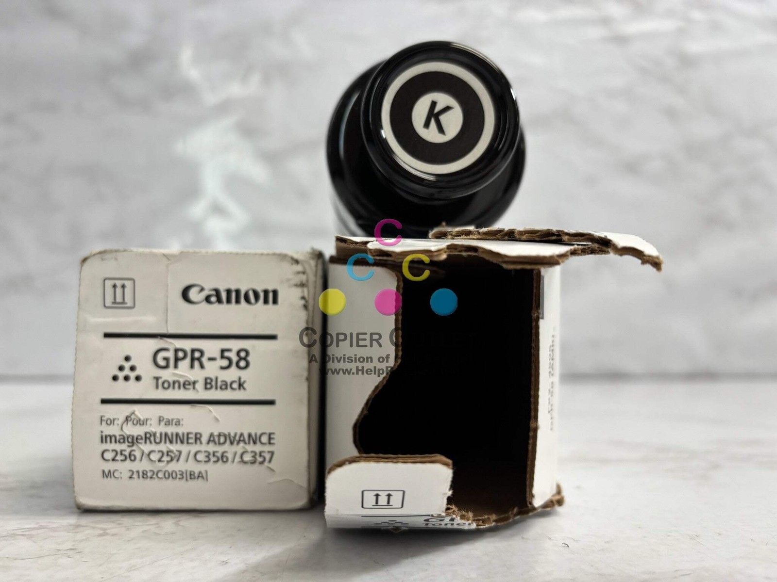 2 Genuine Canon GPR-58K (218C003) Black Toners NEW - 1 New and 1 Open Box ***Please Reference Photos*** Same Day Shipping FOR: iR ADVANCE C256,C257,C259, C356,C357,C359 Listed by: Renee (Sales Team) ?Life is often made up of trying things...just to see if they will work? -RRW (A positive moment brought to you by Help Resale) Copier Outlet (A Division of Help Resale) Copier Outlet was established in 1993. We buy and sell both domestically and internationally and have wide assortment of copiers, consumable and accessories of all popular brands. All of our copiers are in house and available for your inspection. They all have been tested and rated for functions, cosmetics and overall appearance. Our consumable and accessories selections include toners, imaging units, developers and copier parts such as fax board, fixing unit, fuser unit, roller, cleaning brush, drum blades and etc. For more detailed information on our copiers, consumables and accessories, please feel free to give us a call. We are more than happy to assist you with the pricing and guide you to find the copiers, consumable and accessories you wish to buy. Best Regards, Copier Outlet Sales Team Monday - Friday: 9:00 am to 5:00 pm (PST) Copier Outlet Promo Video - YouTube Video will open in a new windowUsing the App? Paste link into a browser window: [isdntekvideo] All product and company names are trademarks TM or registered trademarks of their respective holders. Use of them does not imply any affiliation with or endorsement by them.