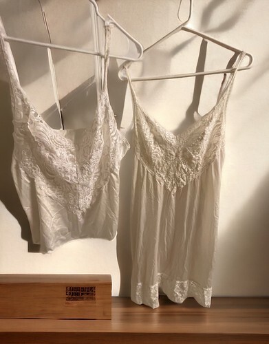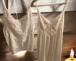 - 2 PC Vintage Women’s Vanity Fair White Cami Top 38/44 & Full Slip Size 36 24"/42