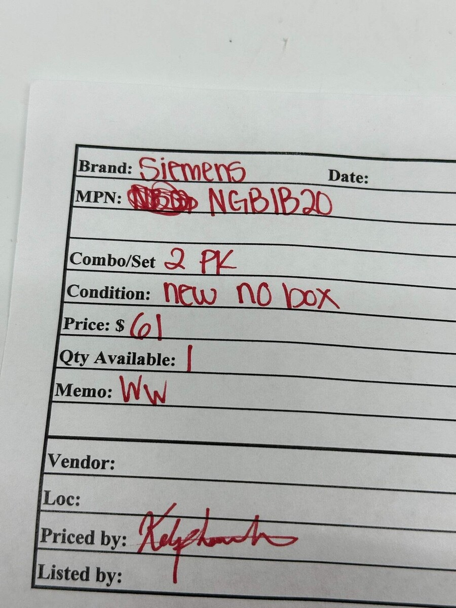 2 PK Siemens NGB1B20 Miniature Circuit Breaker 20A NEW NO BOX The Siemens NGB1B20 2 Pack Miniature Circuit Breaker 20A provides reliable protection for residential and commercial electrical systems. Each breaker offers 20 amps of dependable circuit protection against overloads and short circuits. Its compact, modular design allows for easy installation in standard panels. Built with durable Siemens engineering, it ensures long-lasting performance and minimal maintenance. This breaker is ideal for lighting, small motor loads, and general-purpose circuits. Trust Siemens quality for consistent safety and efficient electrical system operation. Listed by: Kareena (Sales Team) "Every day may not be good, but there?s something good in every day."? Alice Morse Earle (A positive moment brought to you by Help Resale) About Us Welcome to Help Resale, your go-to consignment shop where value meets quality. At Help Resale, we're dedicated to providing you with an exceptional shopping experience, whether you're looking to find the best deals or consign your items. Need to buy a product, but don't see it in our store? Please feel free to reach out to us and we will help you find it! Help Resale 7200 Fair Oaks Blvd Suite 120 Carmichael CA 95608 Business Hours: Monday-Friday: 9:00 am to 5:00 pm (PST) All product and company names are trademarks TM or registered trademarks of their respective holders. Use of them does not imply any affiliation with or endorsement by them.
