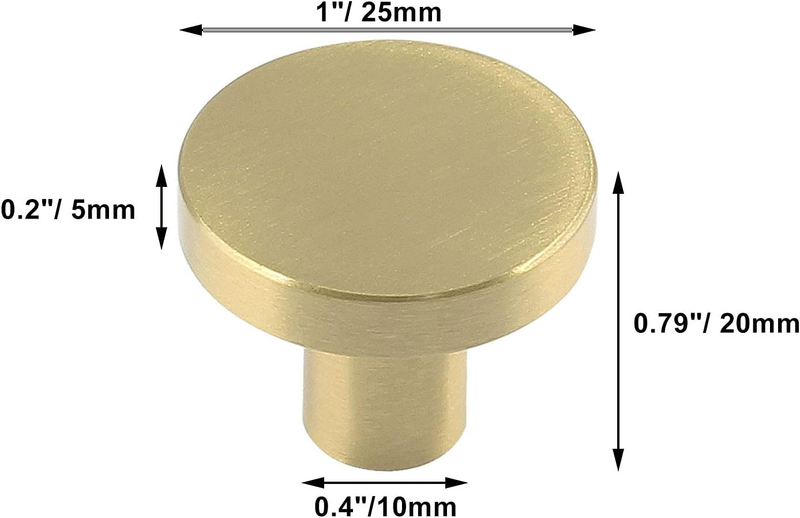 - 2 Pack 1 Inch Cabinet Knobs with Mounting Screws, Solid Brass Drawer Knobs, roun