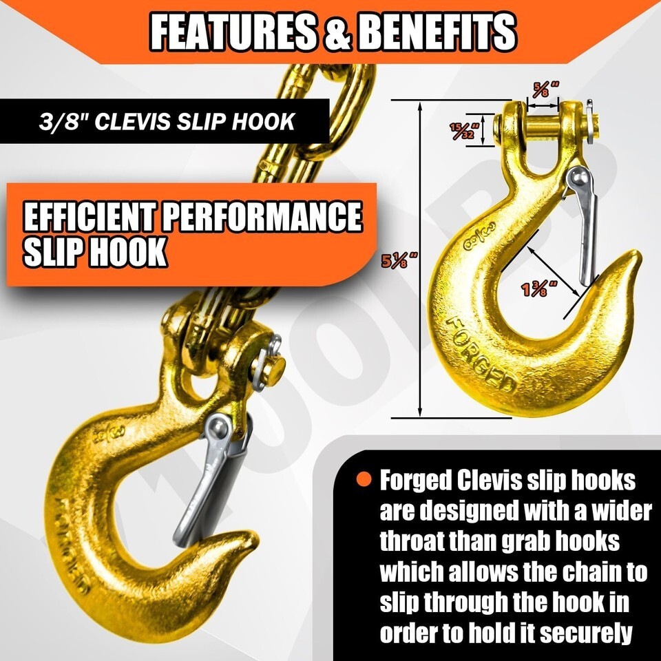 HEAVY DUTY CONSTRUCTION: 3/8" standard link size, heat-treated, and strength tested to ensure superior performance.