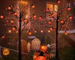 2 Pack 4FT Prelit Black Halloween Tree with Timer 20 Jack-O-Lantern Pumpkins 96 LED Orange Lights