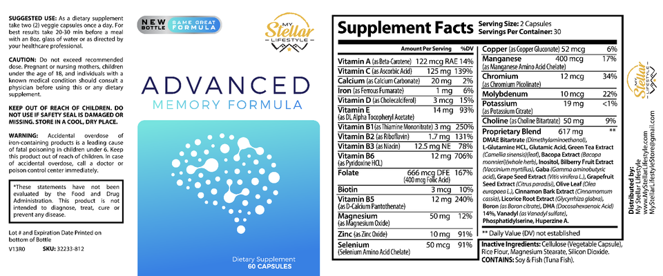 2 Pack Advanced Memory Formula, helps memory attention focus-60 Capsules x2