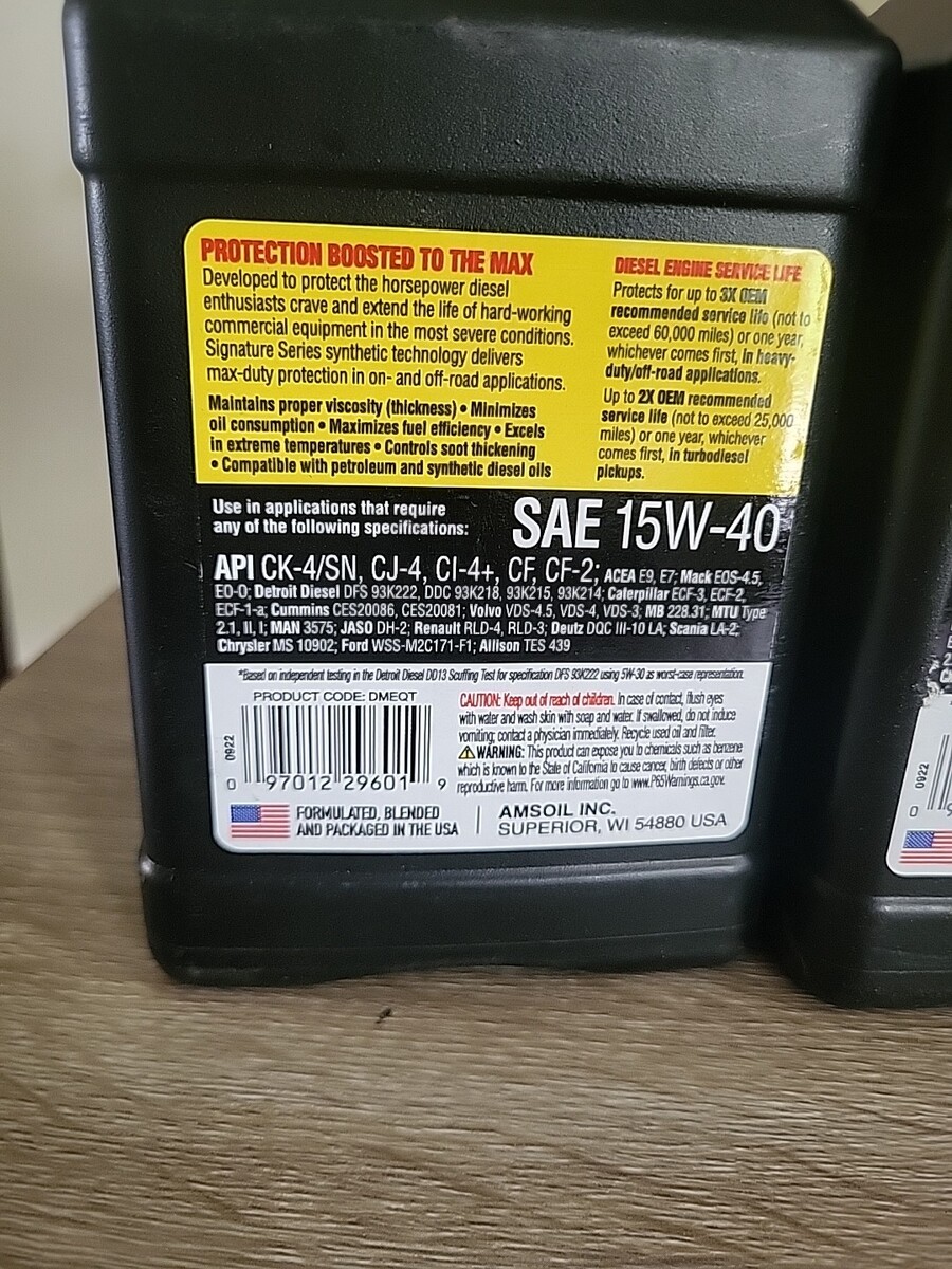 2 Pack Amsoil Signature Series 15w-40 max Duty Synthetic Diesel, 2 Quarts