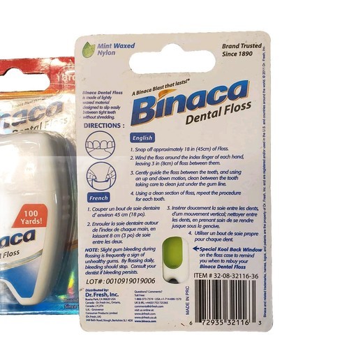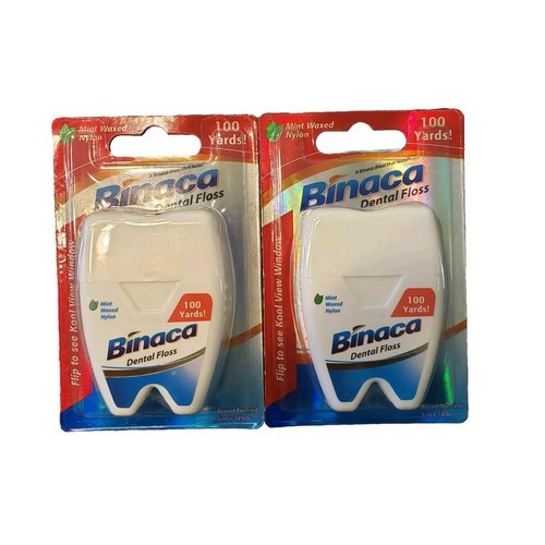 2 Pack - Binaca Mint Waxed Dental Floss 100 Yards Remove Plaque Gentle Clean.