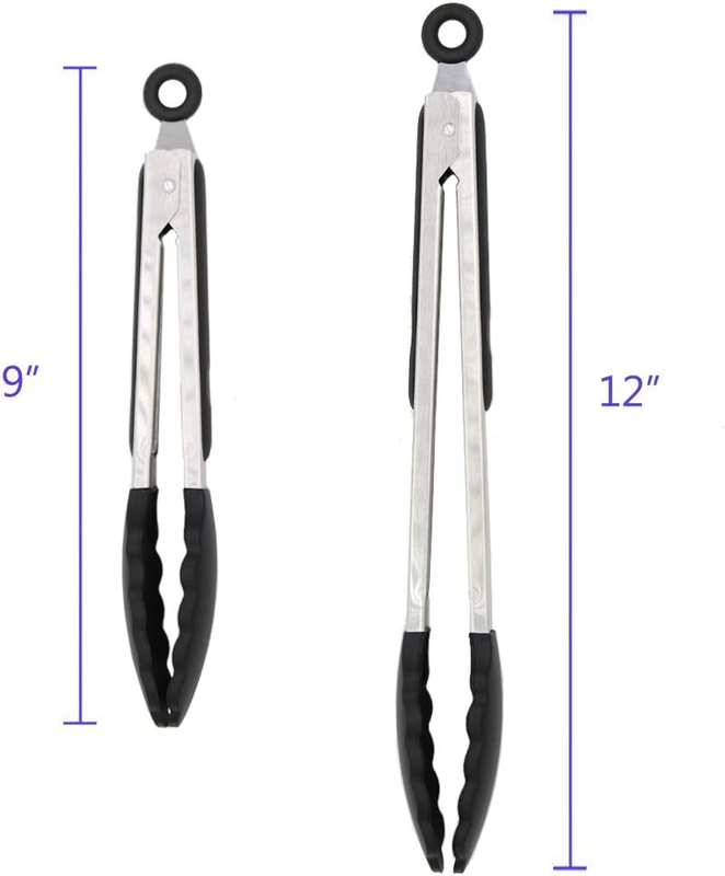 - 2 Pack Black Kitchen Tongs, Premium Silicone BPA Free Non-Stick Stainless Steel