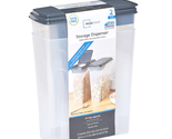 The Mainstays Large Plastic Storage Dispensers for Cereal, Snacks and More - Set of 2 - offers a handy way to keep and dispense cereal snacks, pasta, rice and many other dry pantry foods. The tall, slim shape helps maximize your pantry?s space, neatness and cleanliness. The 6 quart / 24 cup size fits easily in the hand and is sized to handle the larger bags of food that are otherwise difficult to manage. The cereal dispenser features a unique ?bag-In? storage option as well. Benefits include being able to read the variety and brand information on the bags, and, as a bonus, the inside of the container stays clean! To utilize this feature, simply place the bag inside the container and scissor off the top roughly level with the dispenser?s height. Replace the flip top lid so you can pour fresh from the original packaging! Also useful for organizing bird seed, pet foods and treats, kibbles, chews and more. This product is proudly manufactured from high quality BPA-Free plastic and is top rack dishwasher safe.