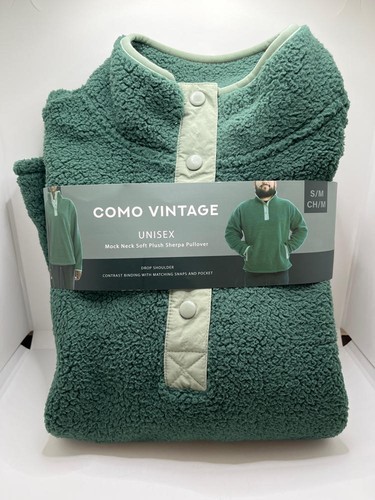 - 2 PACK Como Vintage Unisex Plush Sherpa Pullovers, BLUE & GREEN, SIZE S/M