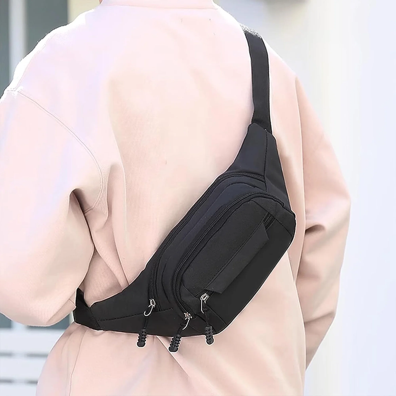 Crafted from lightweight waterproof Oxford cloth with a durable polyester lining, this waist bag is built to last?wear-resistant, scratch-resistant, and perfect for outdoor adventures. Its sleek, minimalist design complements any holiday outfit while providing practical functionality. The adjustable strap (45-80 cm / 17.7-31.5 inches) ensures a comfortable fit for all body types, making it ideal for both men and women. With four spacious zippered pockets, you can securely organize essentials like your phone, keys, wallet, documents, and cosmetics. The smooth-gliding zippers enhance convenience, ensuring quick access and reliable security. Versatile and stylish, this bag easily converts from a waist pack to a crossbody bag, making it perfect for running, hiking, cycling, travel, and everyday use?an excellent gift for outdoor enthusiasts who demand both fashion and functionality.
