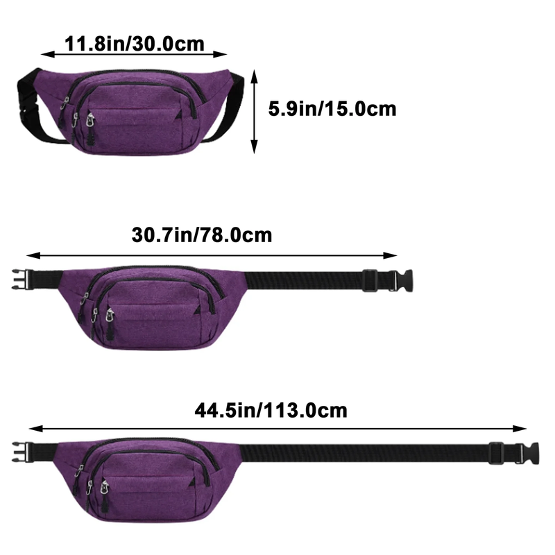 ?High-quality materials?The waist bag is made of lightweight waterproof Oxford cloth and durable polyester lining, which has a long service life, is wear-resistant and scratch-resistant. As an outdoor travel waist bag, its simple and elegant design matches your holiday outfit perfectly. ?Standard size?Our waist bag adopts an adjustable bandage design, and the circumference can reach 45-80 cm/17.7-31.5 inches, which is suitable for men and women of different body shapes. ?Multi-pocket design?Our waist bag has four zipper pockets, which is convenient for you to store items such as mobile phones, keys, wallets, documents and cosmetics. ?Fashionable and practical?The zipper of our waist bag is very smooth and can be easily opened and closed to ensure the quality and practicality of this waist bag, bringing you a better outdoor experience. ?Good outdoor equipment?As a gift for outdoor sports enthusiasts, it can be used as a crossbody bag and waist bag, suitable for various outdoor occasions: running, walking, mountaineering, traveling, hiking, cycling, vacation, etc.