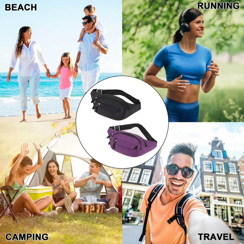 - 2 Pack Fanny Packs for Men and Women Waist Bag with 3-Zipper Pockets Bum Bag Wai