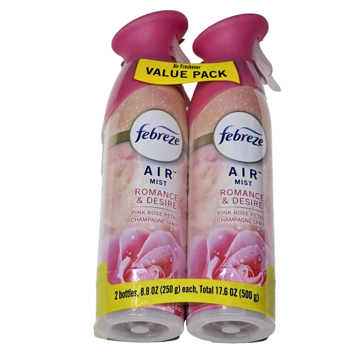 - 2 Pack Febreze Air Mist Romance & Desire Pink Rose Petal Champagne Spritz 8.8oz.