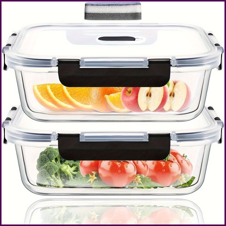 - 2 Pack Glass Meal Prep Containers Set 640ml | BPA-Free, Airtight, Microwave Safe