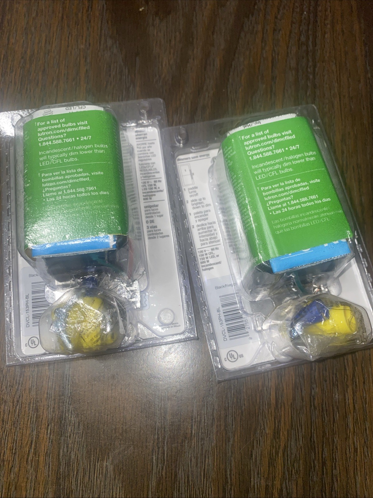 - 2 Pack Lutron Diva C-L DVCL-153PH-BL Dimmer - Single or 3 Way - Black Lot