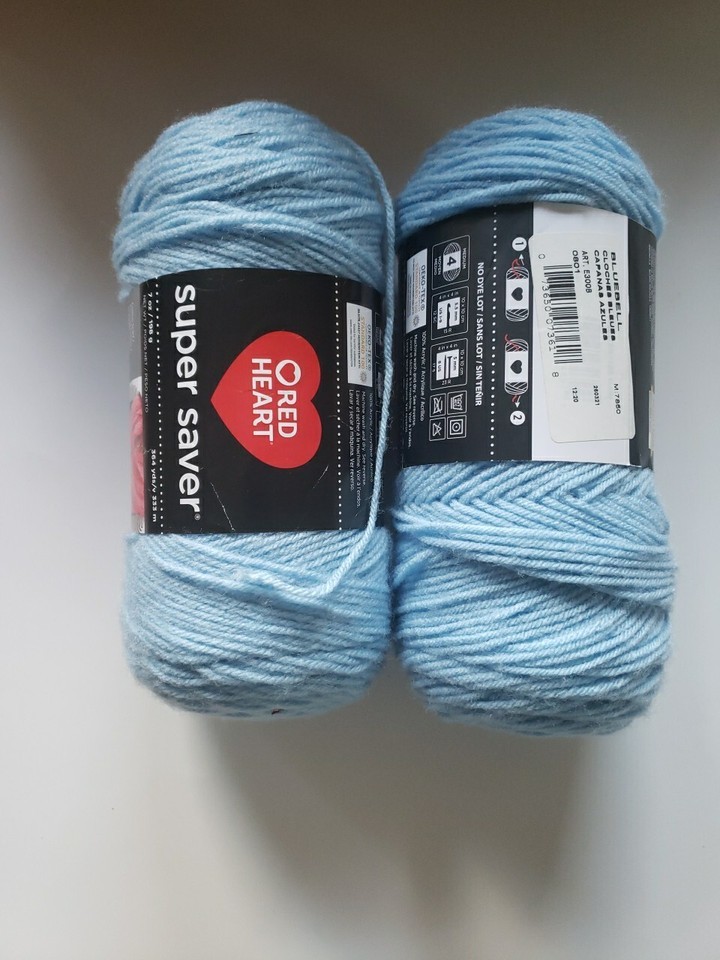 This is a 2 pack of Bluebell colored Red Heart Super Saver acrylic yarn, weighing at a 4-medium/worsted weight. The yarn comes in skein shape and belongs to the Super Saver product line. It is perfect for crafts and needlecrafts, and can be used for various projects. The pack is unit of sale and is suitable for those who love the brand Red Heart and prefer acrylic fiber content.