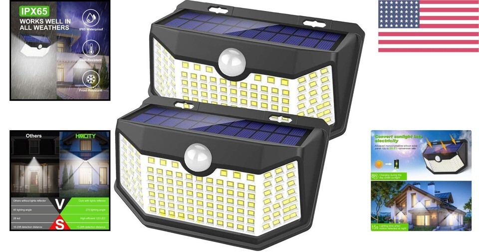 - 2-Pack Solar Powered LED Outdoor Lights with Motion Sensor - Waterproof & Bright