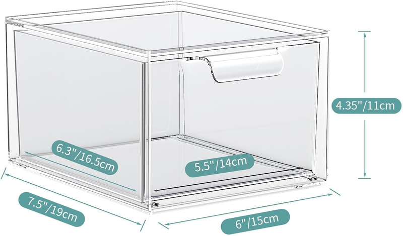 2 Pack Stackable Makeup Organizer and Storage, Acrylic Organizers, Clear Plastic Storage Drawer with Handles for Vanity, Undersink, Kitchen Cabinets, Pantry