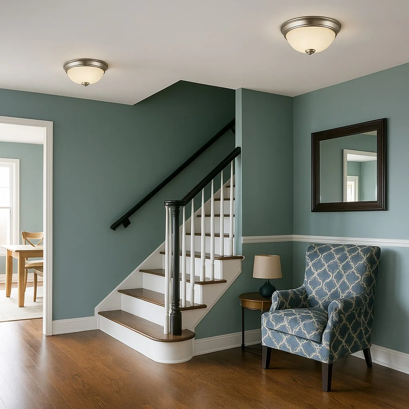 IDEAL FOR kitchens, bedrooms, hallways, dining rooms, and more, this traditional ceiling light two-pack has a modern satin nickel finish with a dome-shaped alabaster glass shade