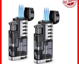- 2-Pack Triple Jet Butane Torch Lighter - Windproof & Adjustable Flame Style