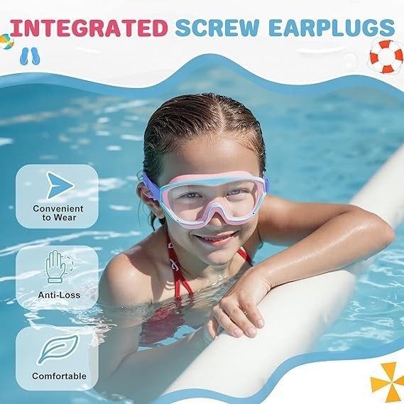 Protective Earplugs Considering that the internal structure of children's ears is relatively fragile, our swimming goggles are equipped with earplugs specially designed to protect children's ears and eliminate discomfort during swimming.