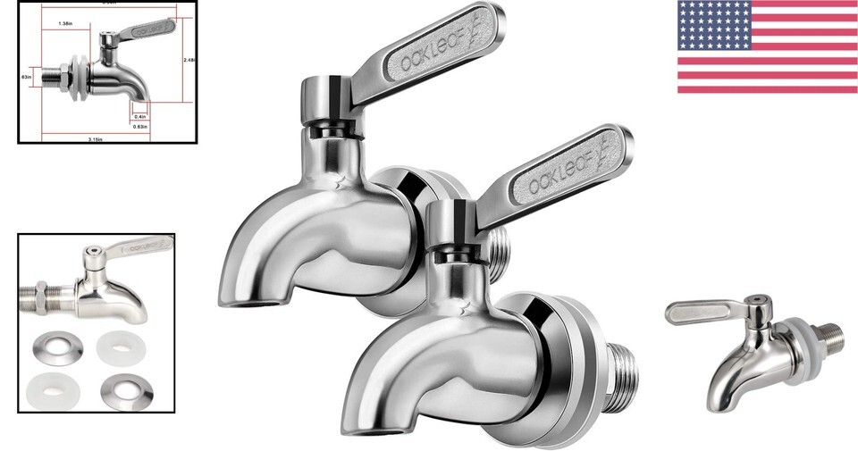 - 2-Pack of Lead-Free Stainless Steel Spigots for Beverage Dispensers - Leak-Proof