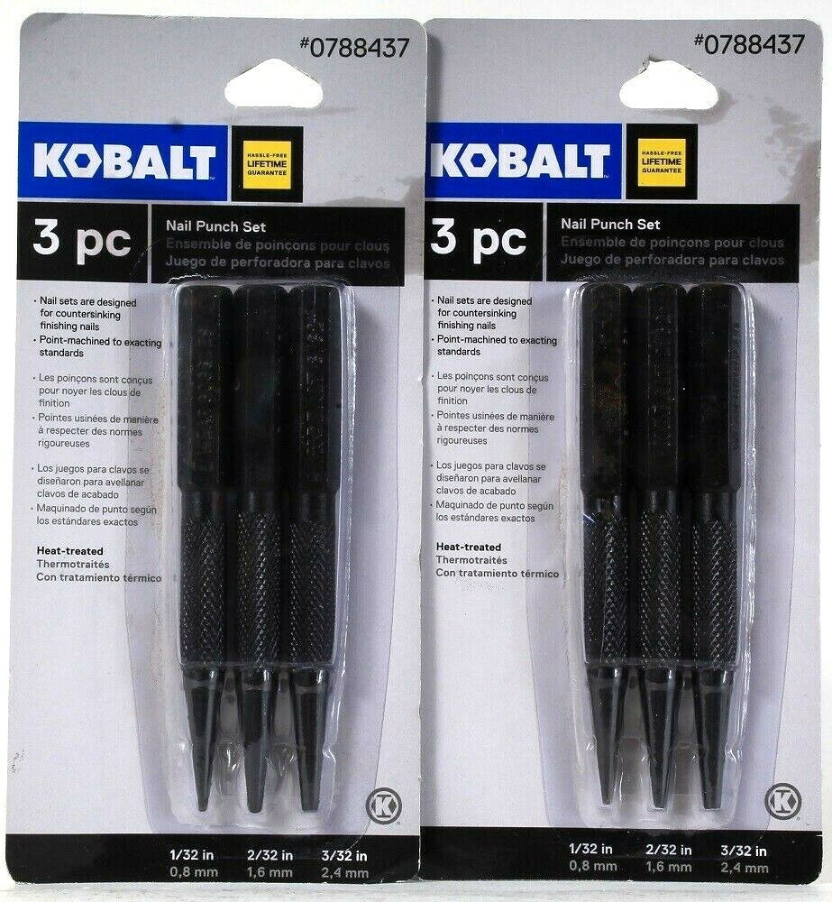 2 Packs Kobalt 0788437 Heat Treated 1/32" 2/32" 3/32" 3 Piece Nail Punch Set.