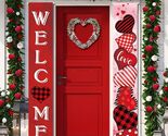 Valentines Banner Decorations: Valentine's Day door banners decorations are designed with a [WELCOME] sign in red buffalo plaid style and heart pattern that your guest, friend, family, and lover will love, bright and colorful Valentines porch banners are nice to party supplies to create a romantic atmosphere in your Valentine's Day party