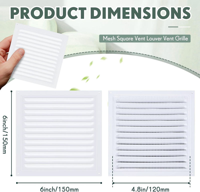 Proper Size and Easy Installation: the gable vents come in a size of approximately 6 x 6 inches, making it an ideal fit for ventilation openings of 6 x 6 inches; With the package including 2 pieces of white gable vent and 8 pieces of screws, installation becomes a breeze