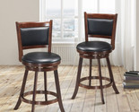 2 Pieces 24 Inch Swivel Counter Stool Dining Chair Upholstered Seat-Brown - Color: Brown