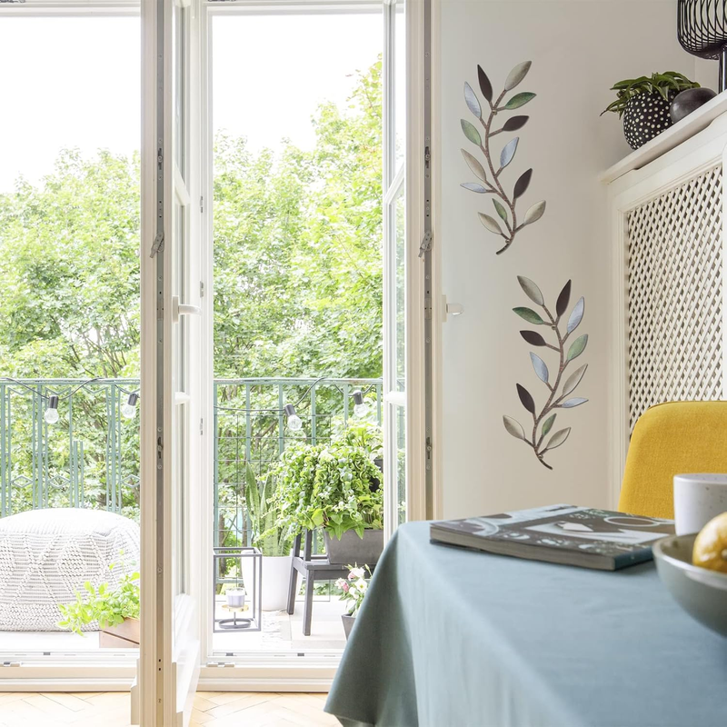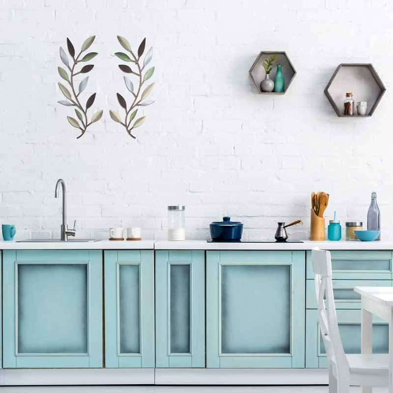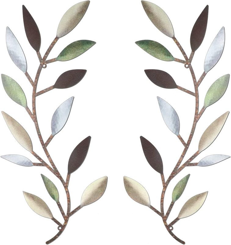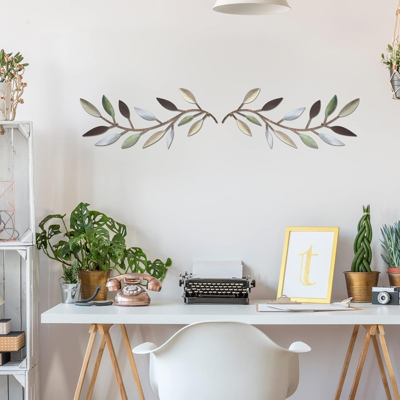 - 2 Pieces Metal Tree Leaf Wall Decor Vine Olive Branch Leaf Wall Art Living Room,