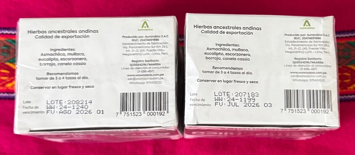 2 Pk Wawasana ASMACHILCA 12ct (24 Bags Total) Boxes Peruvian Herbal Mix Tea 100% Natural
