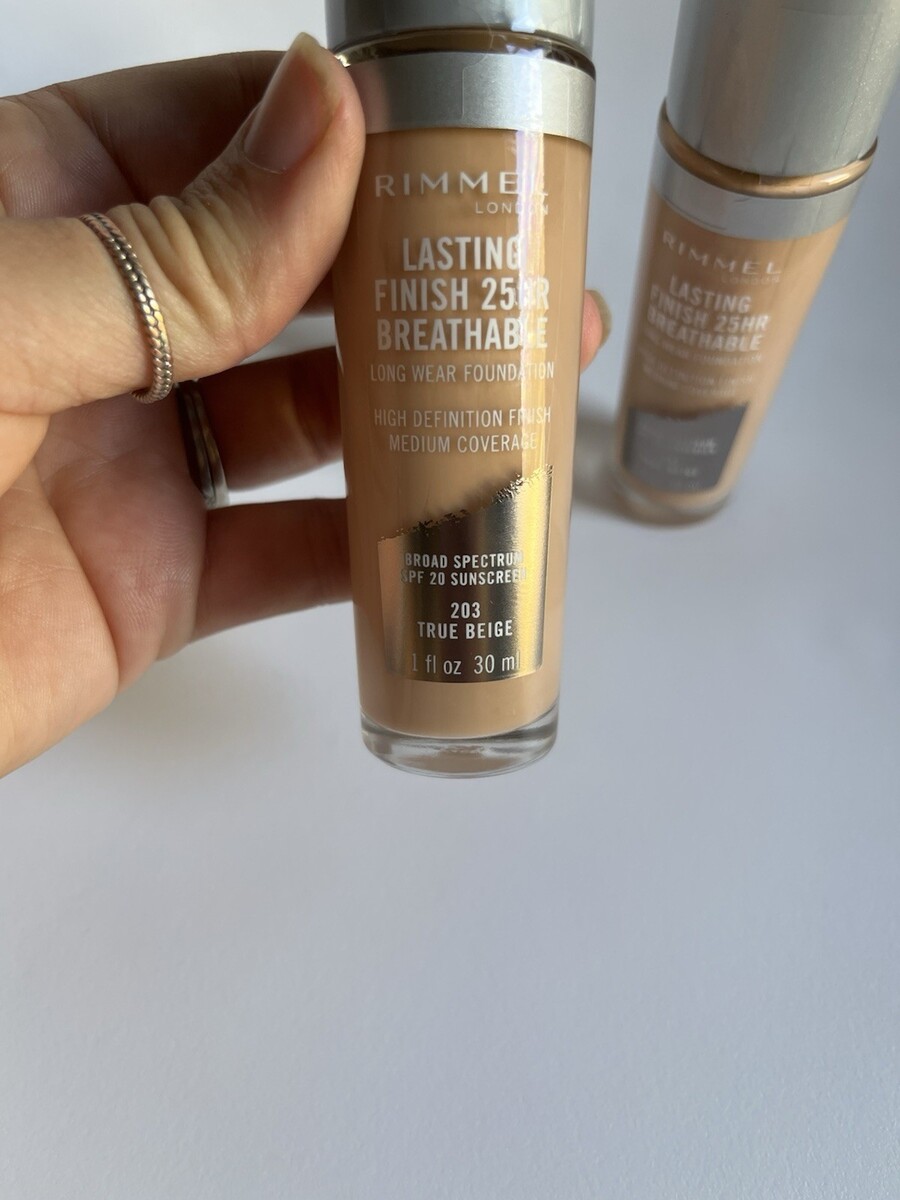 - 2 Rimmel Lasting Finish 25 Hr Breathable Foundation 1.0oz #203 True Beige Sealed