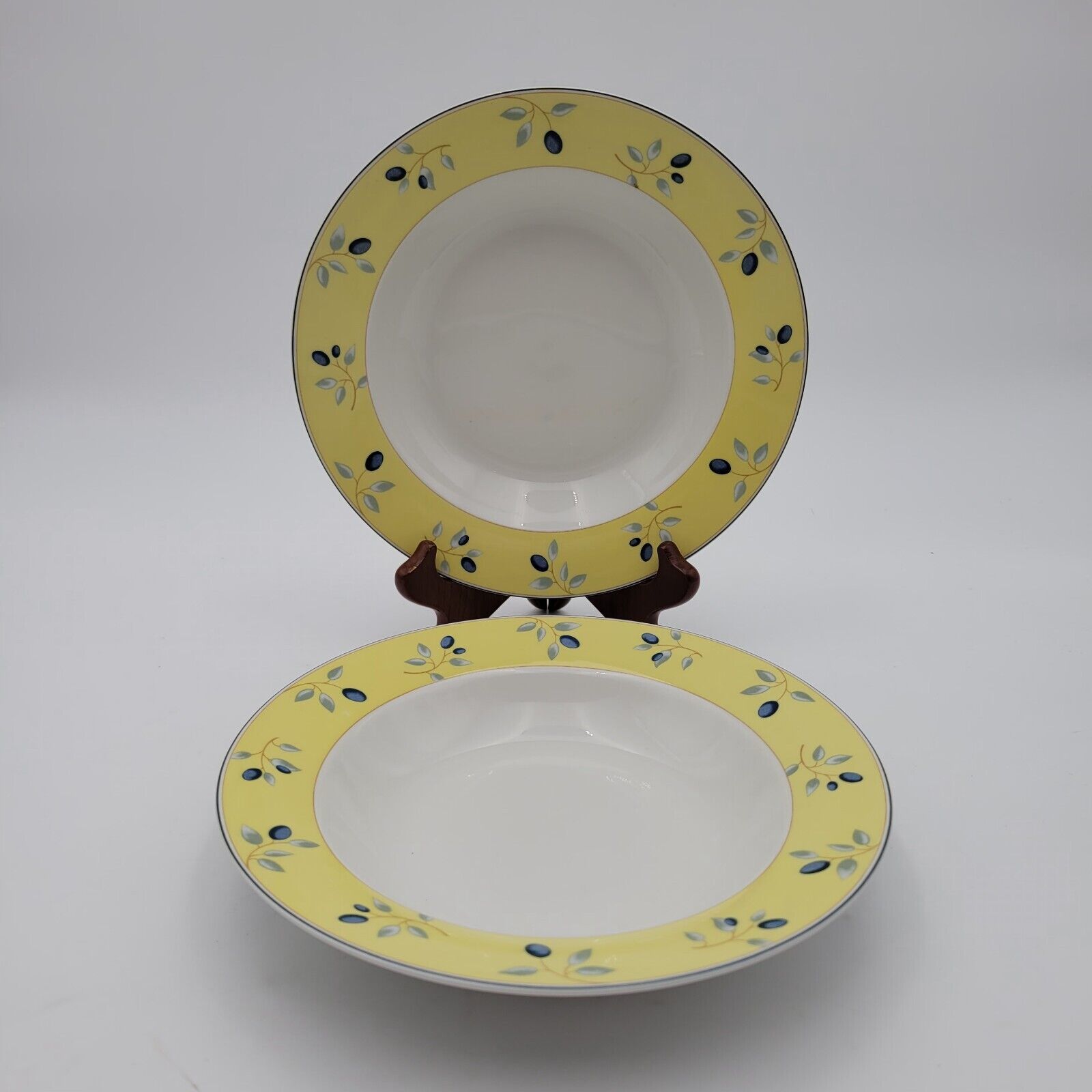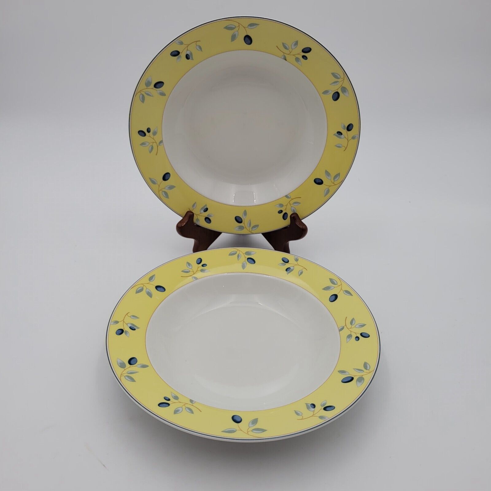 - 2 Royal Doulton Yellow BLUEBERRY Soup Pasta Bowls Set of Two