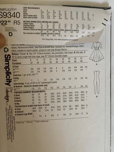 - 2 SIMPLICITY Disney's Adult Cruella Sewing Pattern (s) S9340 S9341 R5 14-22