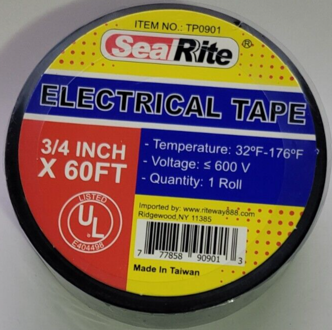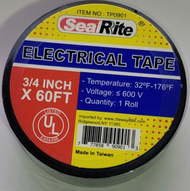 You are Buying Brand New And Factory Sealed 2 SeaRite Black Electrical Tape Pack of 3/4 X 60 ft - High Temp Electrical Tape...It is made of a flexible, rubber-based material that is resistant to water. It is flame retardant and lead free Black electrical tape is a type of adhesive tape that is used for electrical insulation and wire harnessing with Premium performance....