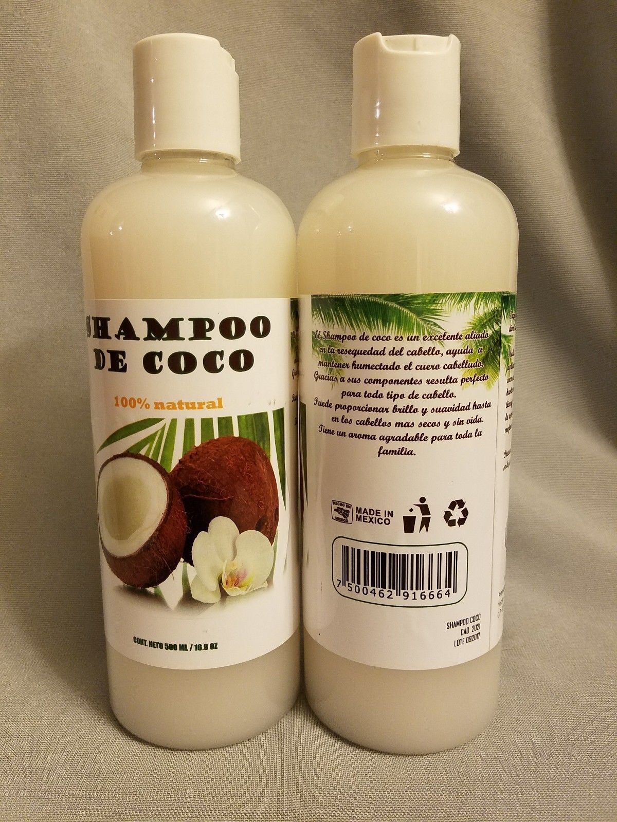 - 2 - Shampoo de Coco, {2 Bottles of Coconut Shampoo} 100% Natural 16oz each