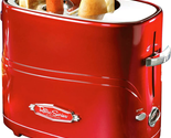 2 Slot Hot Dog and Bun Toaster with Mini Tongs, Retro Toaster, Cooker That Works Chicken, Turkey, Veggie Links, Sausages Brats, Metallic Red
