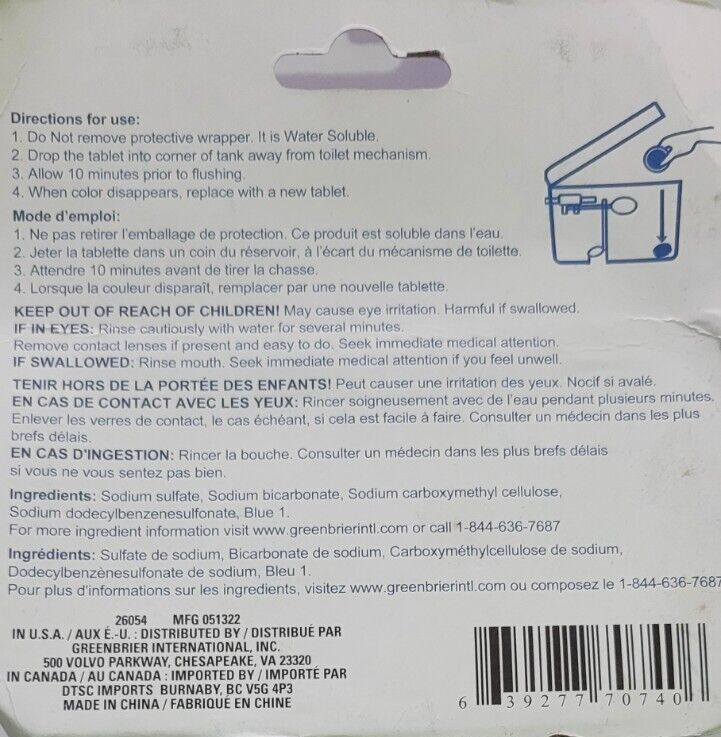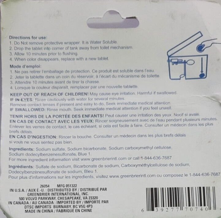 You are Buying a brand New And Factory Sealed Toilet Bowl Cleaner Tabs / 2 tabs
