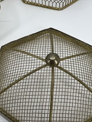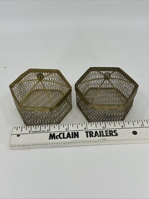 2 VNTG Hexagon Gold Metal Mesh Jewelry Trinket Box W/Decorative Ball Finial Lid