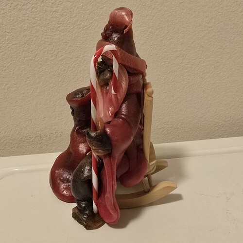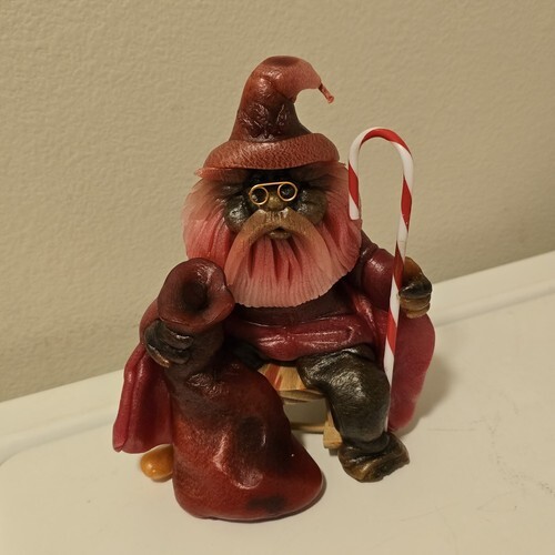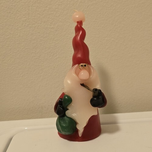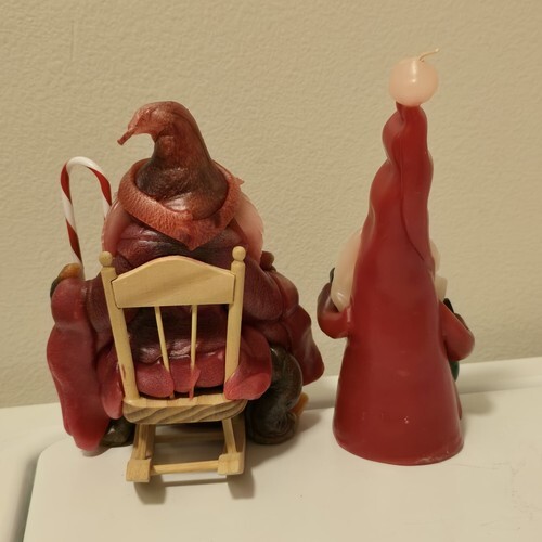 Rare Lot of 2 Vintage 80s Northern Lights Handmade Candles - Wizzard Hand Sculted Wax Drawf Santa in a chair approximately 6.5" x 5.25" + Handcrafted 7" x 3" Wizard Smoking Pipe Wax Candle - Signed. Please See Photos!