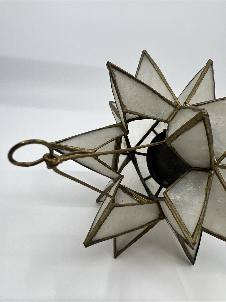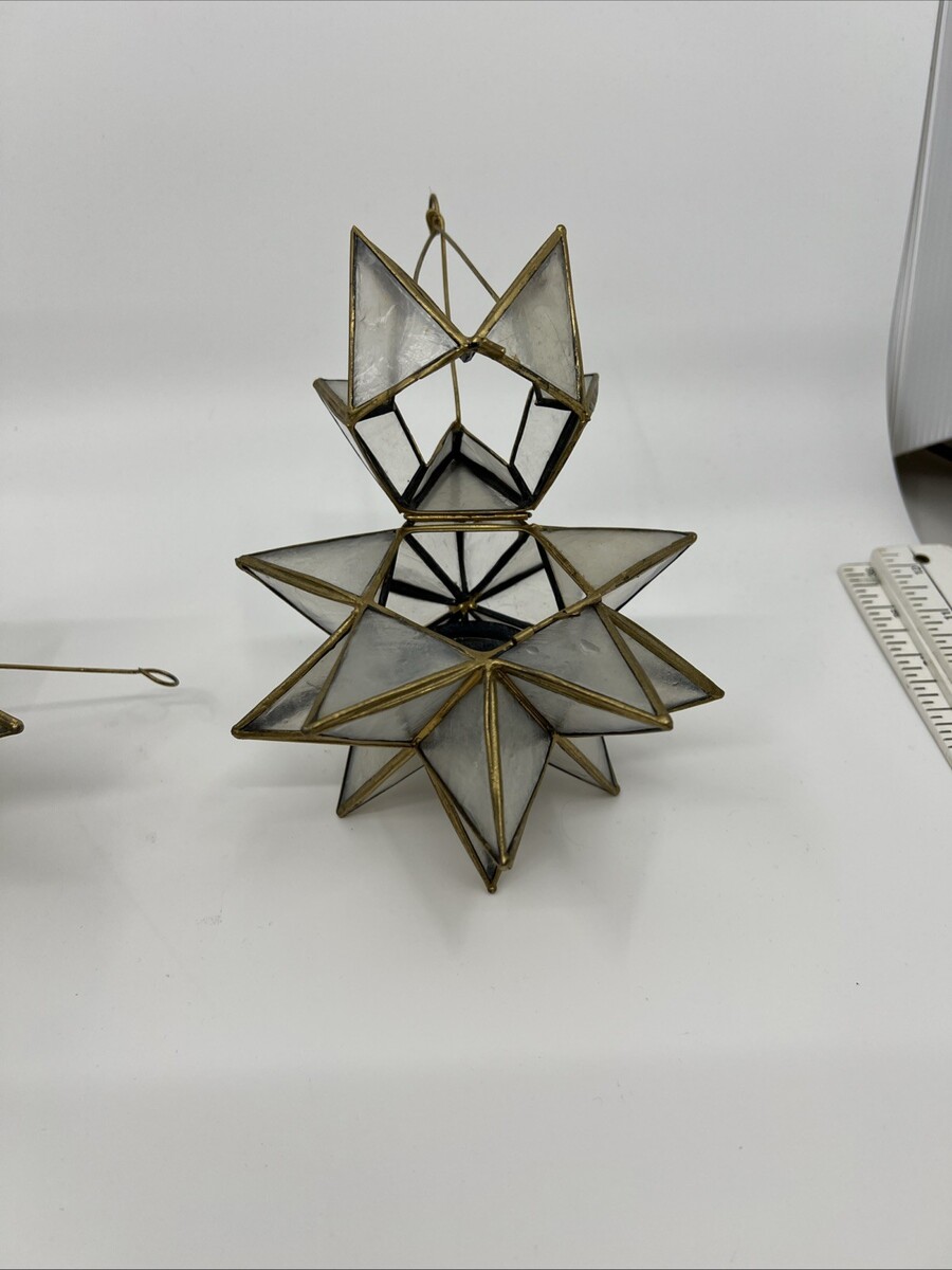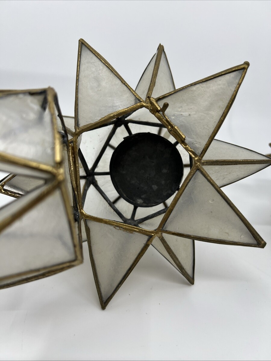 2 VTNG Capiz Shell Moravian Stars Hanging Tea Light Lantern Candle Holder Boho