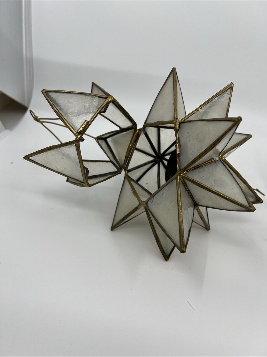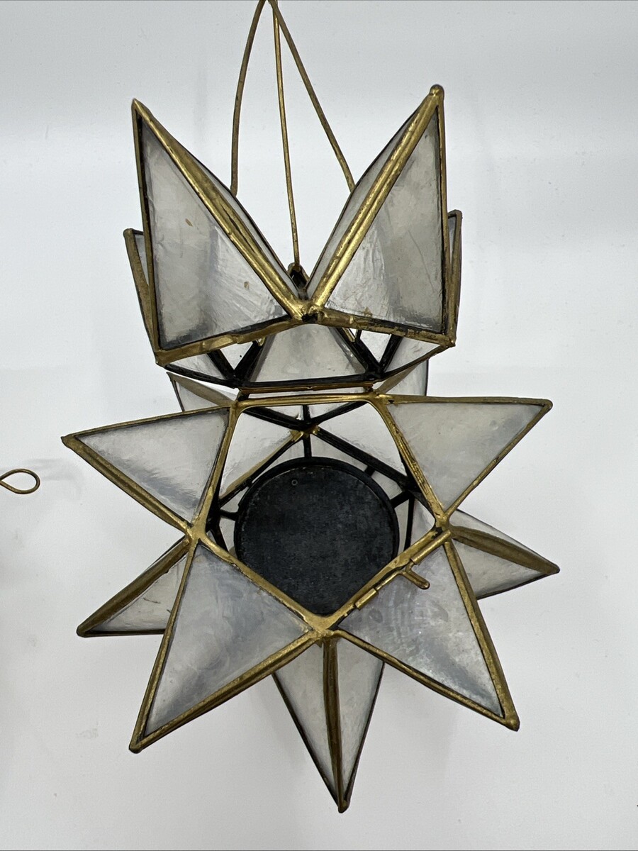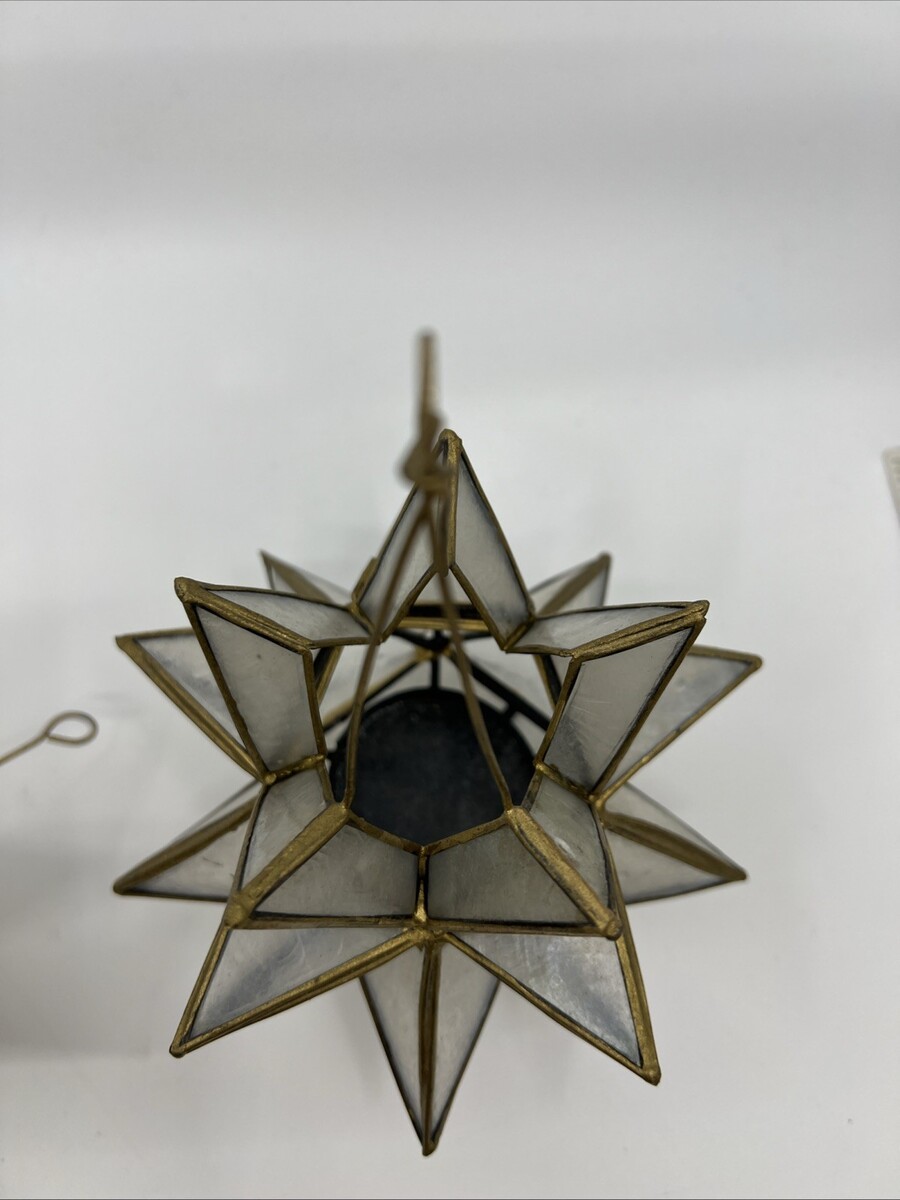 2 VTNG Capiz Shell Moravian Stars Hanging Tea Light Lantern Candle Holder Boho