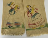 - 2 VTNG Hand Painted Tinted Tea Towels Folk Art Dutch Boy Girl Duck Cottage Core